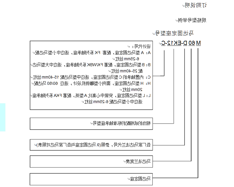 公司研发和生产的马达固定座,马达端可适应松下,三菱,台达,东方等著名厂商的伺服马达/步进马达,轴承座一端适用国际标准化轴承座,从而,马达安装与滚珠丝杠可保证同心,提高安装效率与安装质量。A型,B型,C型,H型,L型与台湾嵩阳SYK相应型号通用;KK型等同台湾上银KK系列,PMI之KM系列,日本THK之KR/SKR等线性模的固定端。M60-BK12-C型马达座具体型号:M60D-BK12-C、M60DP-BK12-C、M60D-BK12-C、M60DP-BK12-C。